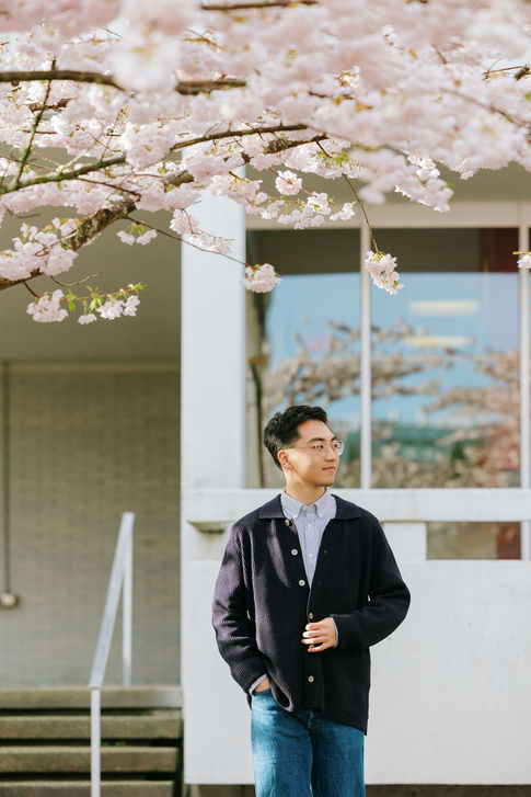 Amid the soft pink blossoms of cherry trees, UBC campus feels like a dream in the heart of spring. With each touch and glance, their love unfolds, delicate and timeless, like the petals gently drifting around them.